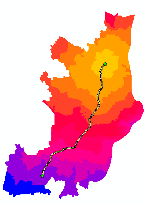 背景:动物需要在不同的森林公园之间迁徙交流,在经过不同的地表时,动物迁徙的困难程度是不一样的,如经过草地林地比较容易,而经过水域和道路时则比较困难。在不同的公园之间构建生态廊道,保护动物的迁徙。