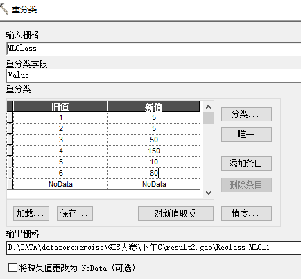 c) 最后与reclass道路镶嵌,镶嵌运算符选择MAXIMUM。