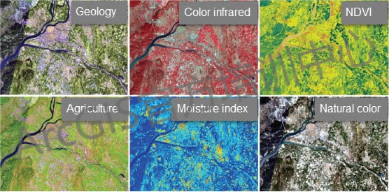 9.计算遥感指数:利用遥感影像可以计算各种指数,如植被指数,可以获取植被覆盖信息或植被健康信息;水体指数,可以找出湿地或计算水质情况;积雪指数,可以找出积雪覆盖的区域并计算面积;建筑指数,可以找出不透水面的区域,提取城市中的建筑物面积;燃烧指数,可以发现易发生火灾的区域以及时预警。